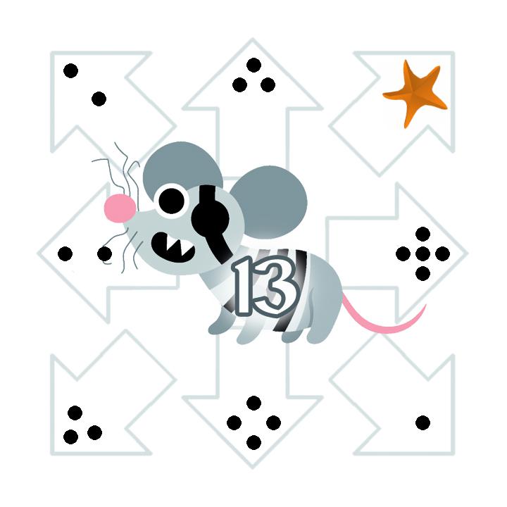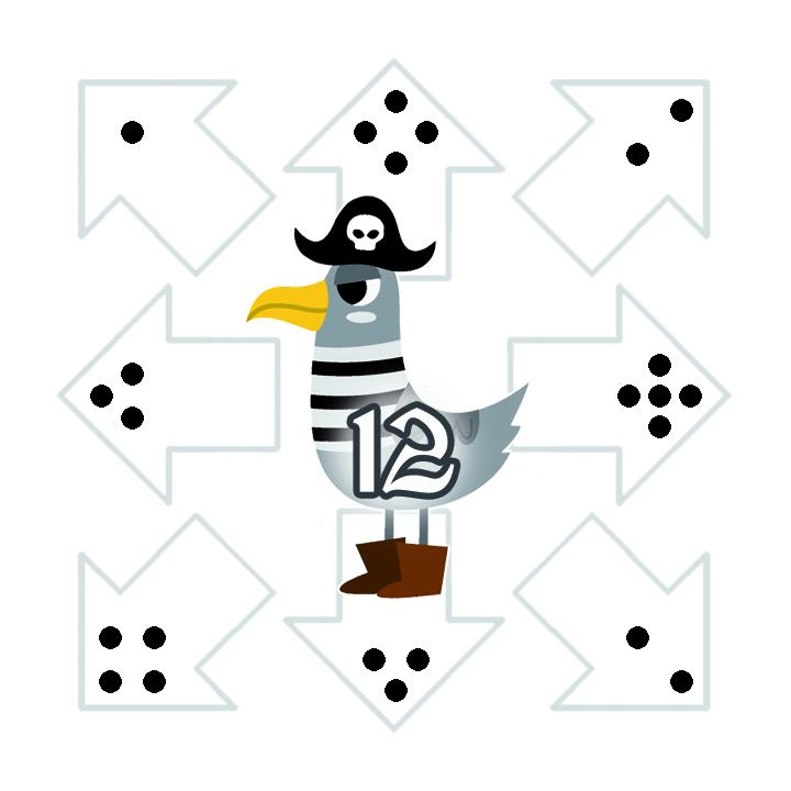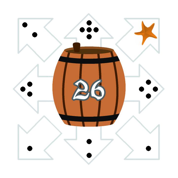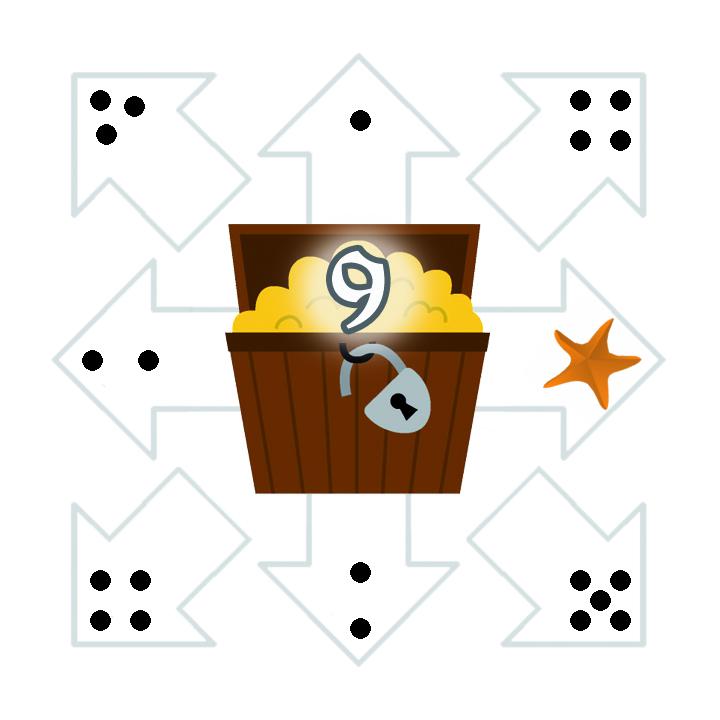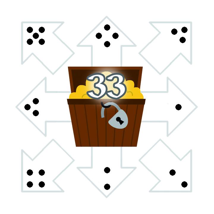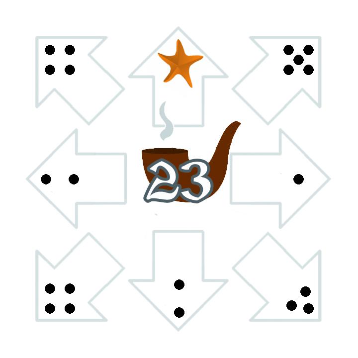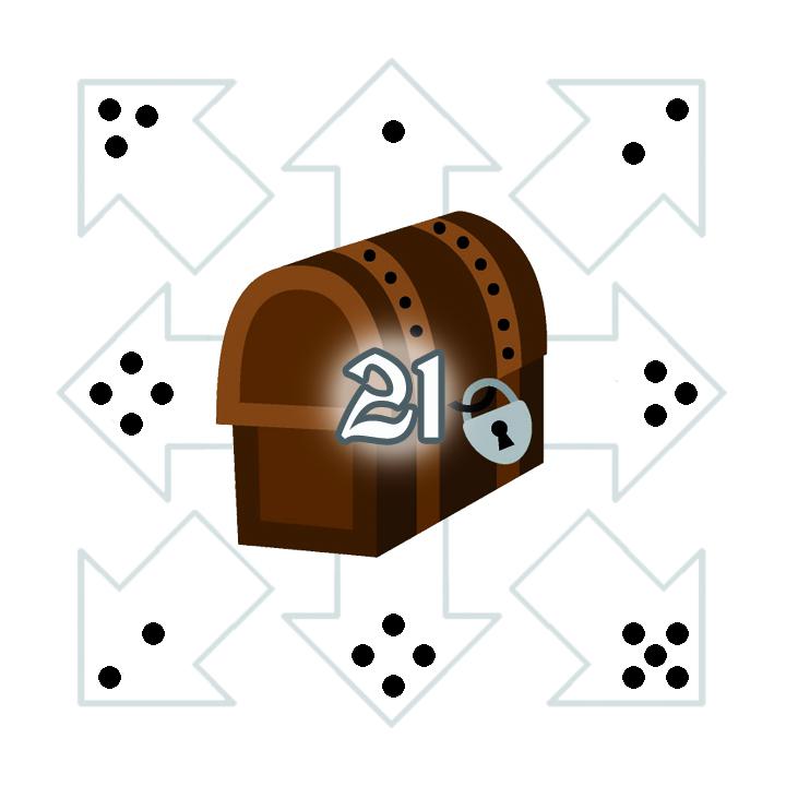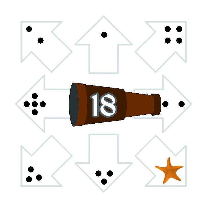 ![]() | ![]() | ![]() | ![]() | ![]() | ![]() | Legende:Blau umrahmtes Feld: Aktuelles FeldOrange umrahmtes Feld: Zielfeld der aktuellen Runde Grün umrahmte Felder: Mögliche Zielfelder in diesem Zug Das Beispielspiel wird über 18 Runden gespielt. Klicke auf ein grün umrahmtes Feld, um dorthin zu gehen (oder, falls es erreichbar ist, direkt auf das orange umrahmte Zielfeld des aktuellen Zuges). Wenn das Zielfeld erreicht wird, wird das Feld mit der nächsten Nummer zum Zielfeld. Größe anpassen: + - Zugfolgen: Aktuell insgesamt 0 Züge | |