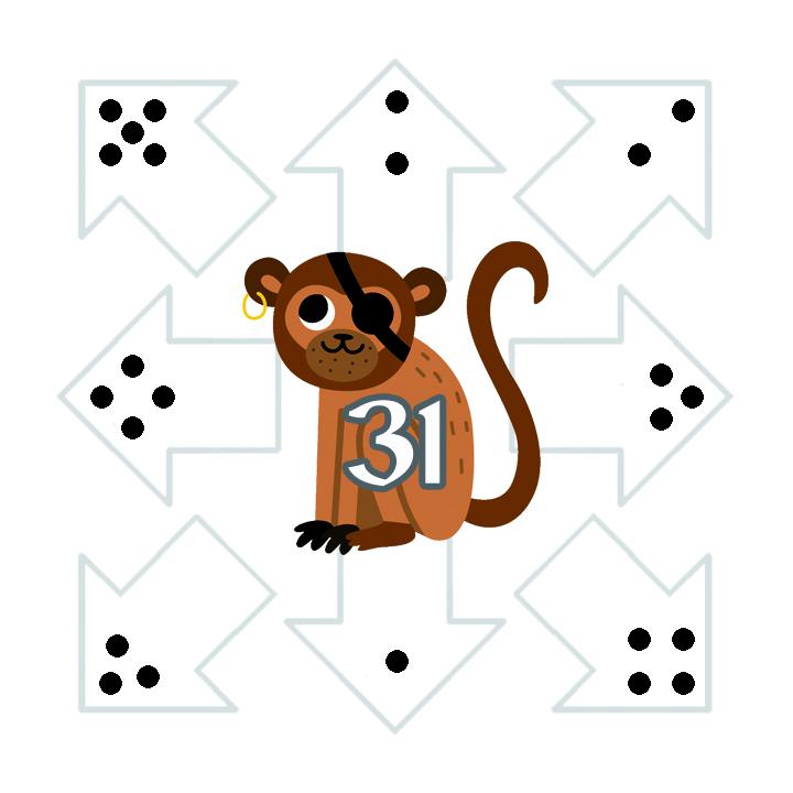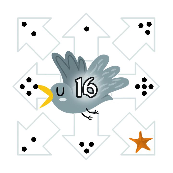 ![]() | ![]() | ![]() | ![]() | ![]() | ![]() | Legende:Blau umrahmtes Feld: Aktuelles FeldOrange umrahmtes Feld: Zielfeld der aktuellen Runde Grün umrahmte Felder: Mögliche Zielfelder in diesem Zug Das Beispielspiel wird über 18 Runden gespielt. Klicke auf ein grün umrahmtes Feld, um dorthin zu gehen (oder, falls es erreichbar ist, direkt auf das orange umrahmte Zielfeld des aktuellen Zuges). Wenn das Zielfeld erreicht wird, wird das Feld mit der nächsten Nummer zum Zielfeld. Größe anpassen: + - Zugfolgen: Aktuell insgesamt 0 Züge | |